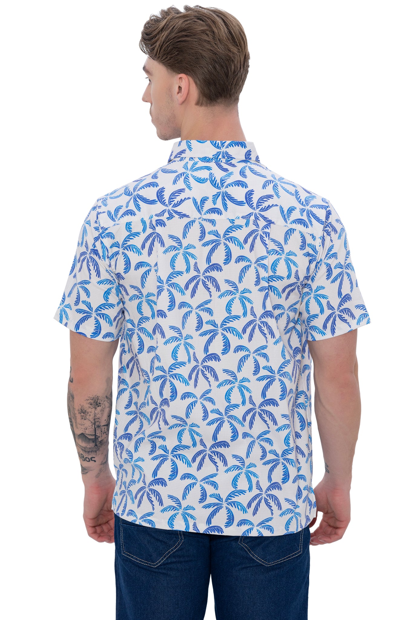HAPPY BAY Mens Hawaiian Shirts Blue Palm Leaves Casual P07730