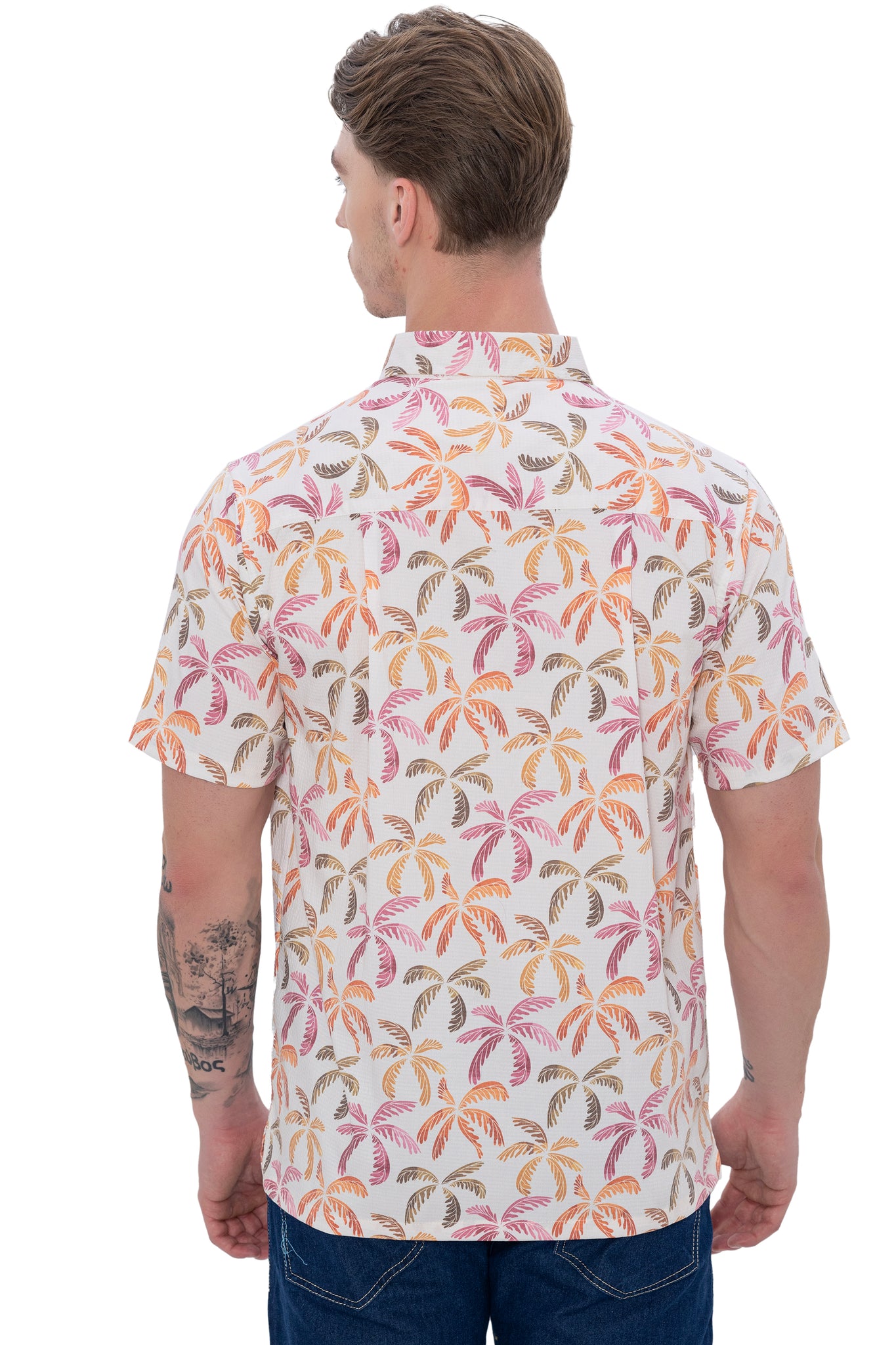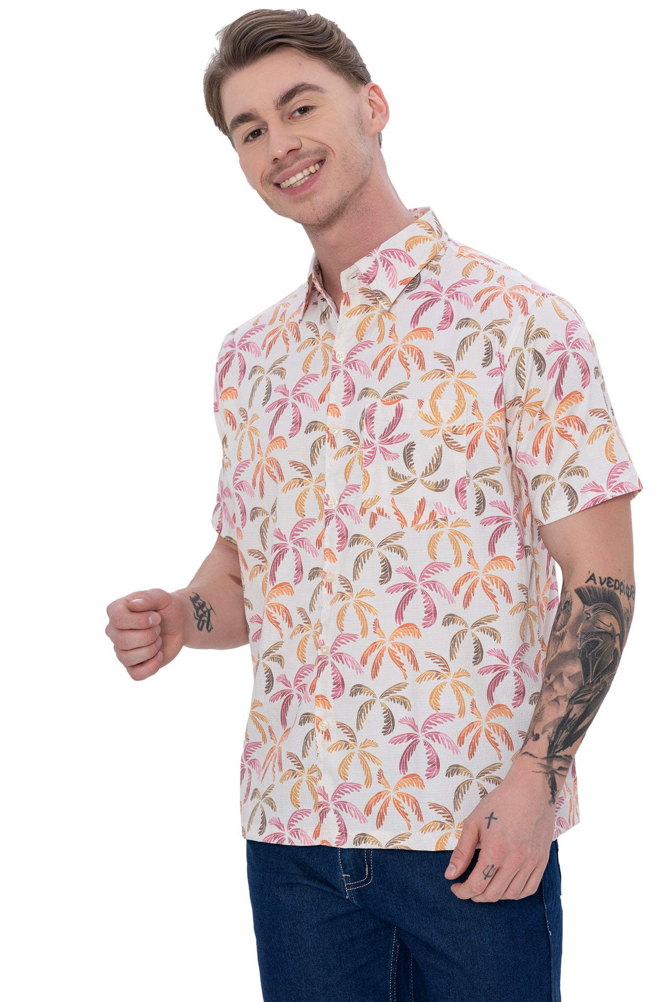 LA LEELA Mens Hawaiian Shirts Tan Palm Leaves Casual P07728