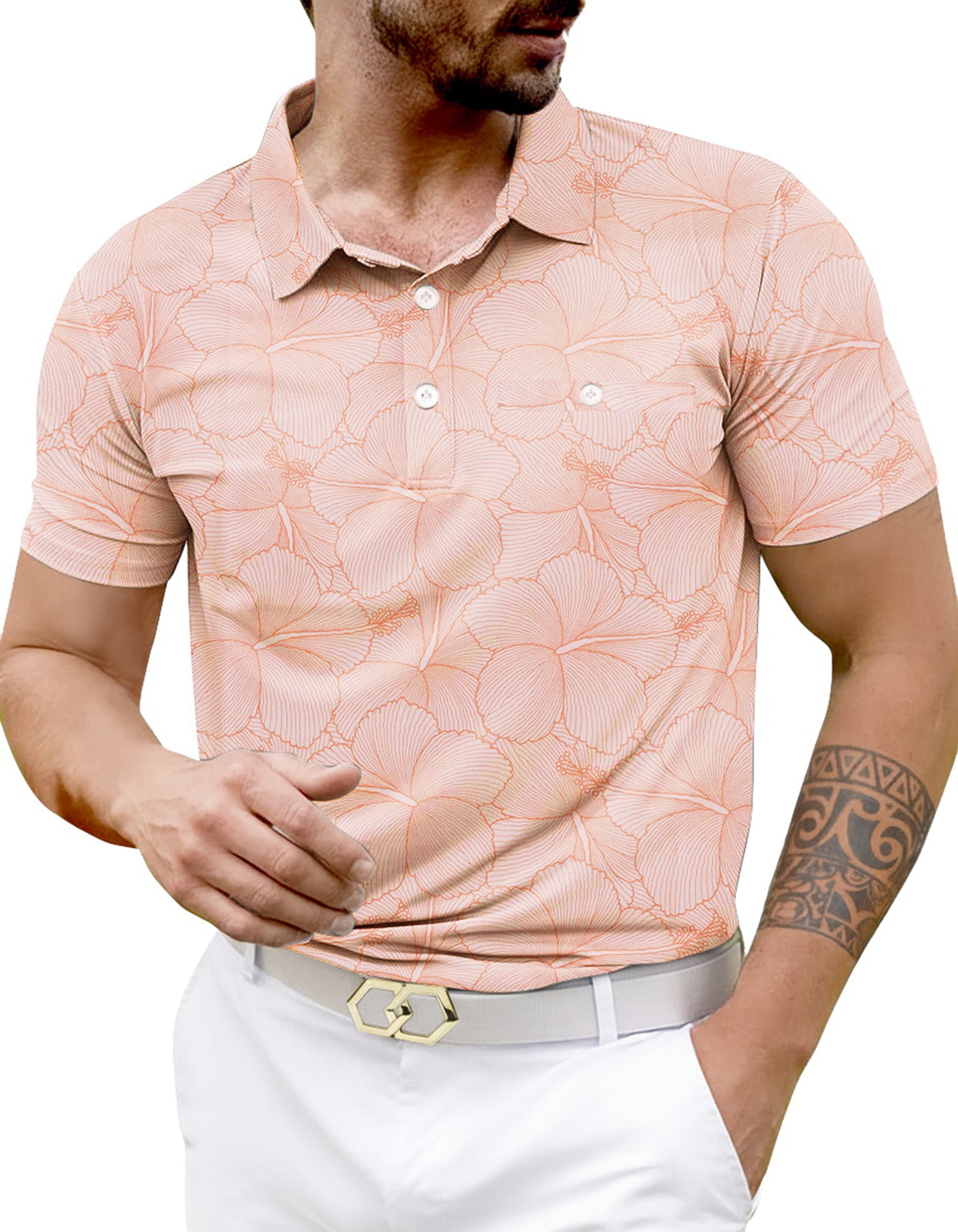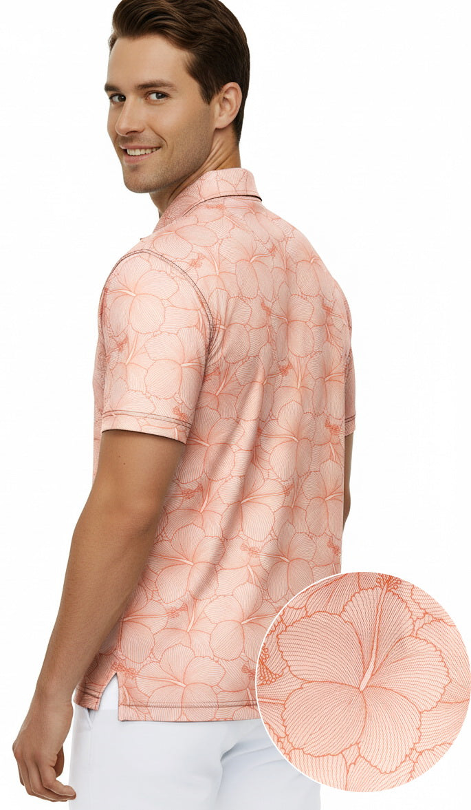 LA LEELA Floral Coral Mens Golf Polo Shirt P10340