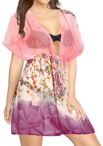 LA LEELA Beach Cover up Kimono Swimwear Swimsuit For Women VALENTINE Pink_Y657 O