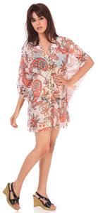 La Leela Super LIGHTWEIGHT CHIFFON Dancing Paisley Swim Cover up Dress Orange