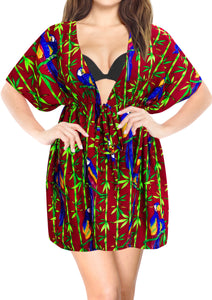 Women's Parrot Swimwear Swimsuit Bikini Cover up Loose Drawstring One Size Red