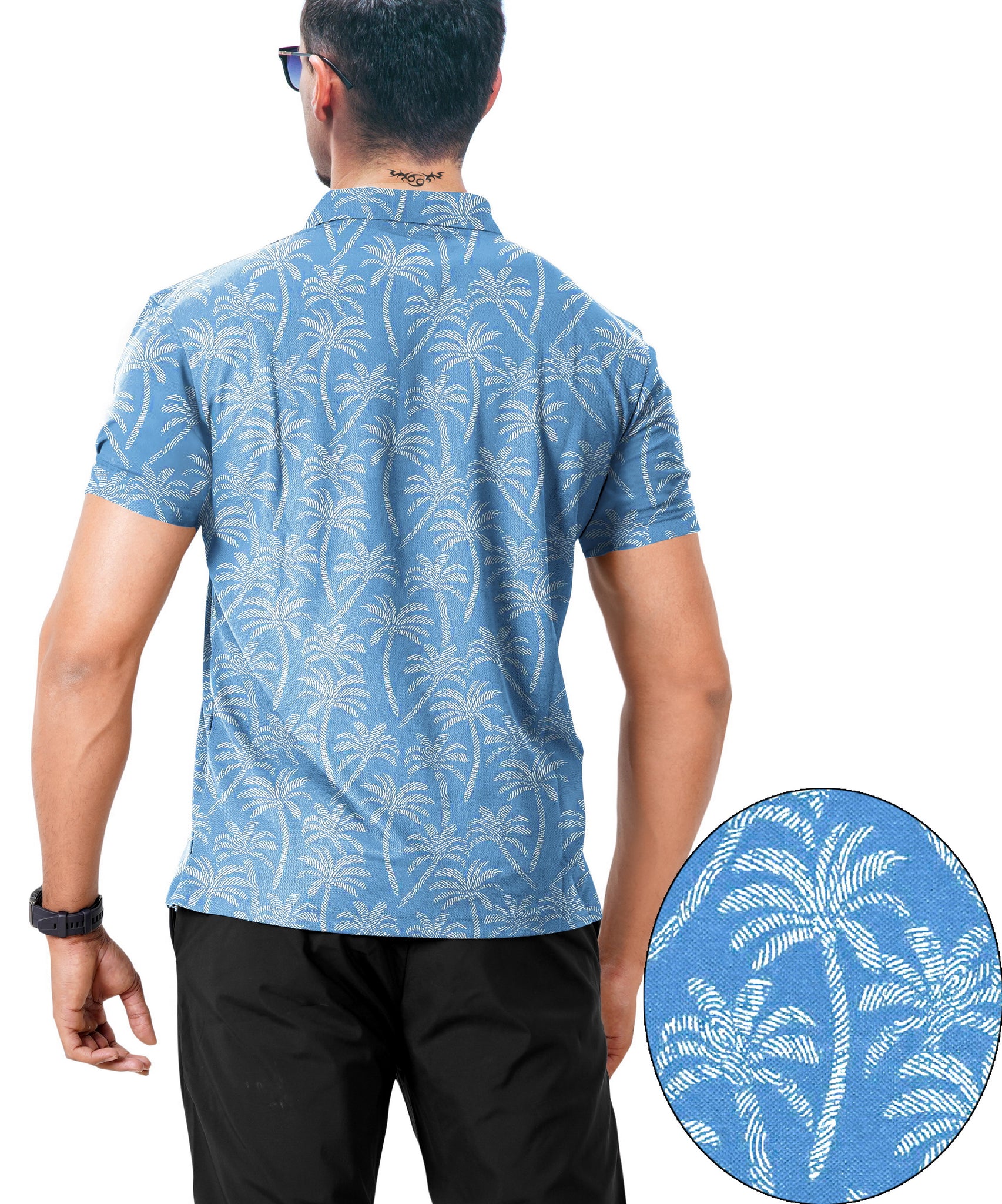 Step into the world of sophistication and comfort with our Men's Polo Tee Shirt featuring an exquisite design of allover Palm Tree against a regal Royal Blue backdrop. Crafted with precision and style in mind, this polo shirt is the epitome of modern fashion and versatility.