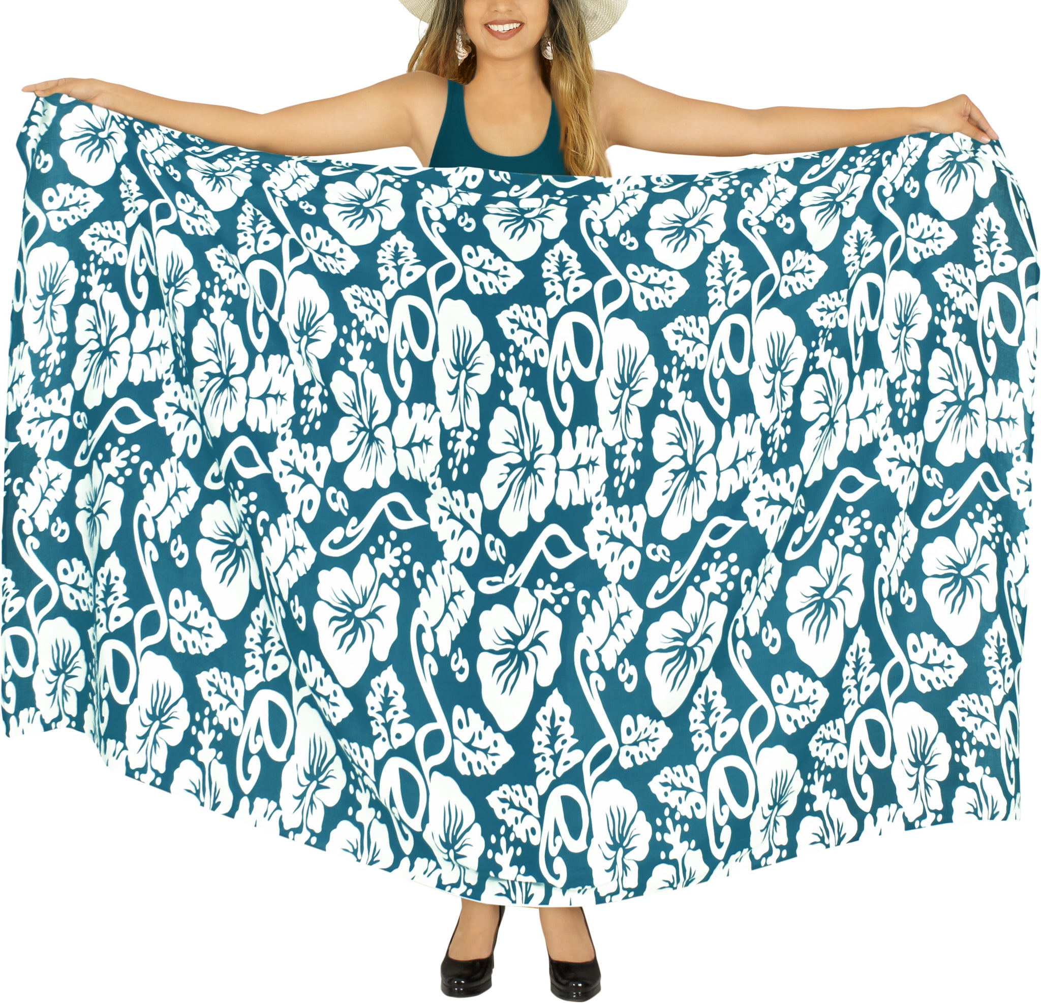 LA LEELA Women's Sarong Wraps Swimwear Cover up Wrap One Size Grey Hibiscus P04153
