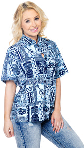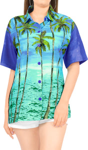 LA LEELA Women's Beach Casual Hawaiian Blouse Short Sleeve button Down Shirt aloha Blue