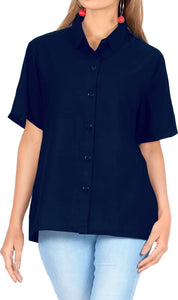 LA LEELA Women's Beach Casual Hawaiian Blouse Short Sleeve button Down Shirt Navy Blue