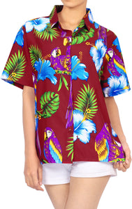 LA LEELA Women's Beach Casual Hawaiian Blouse Short Sleeve button Down Shirt Plus size Maroon