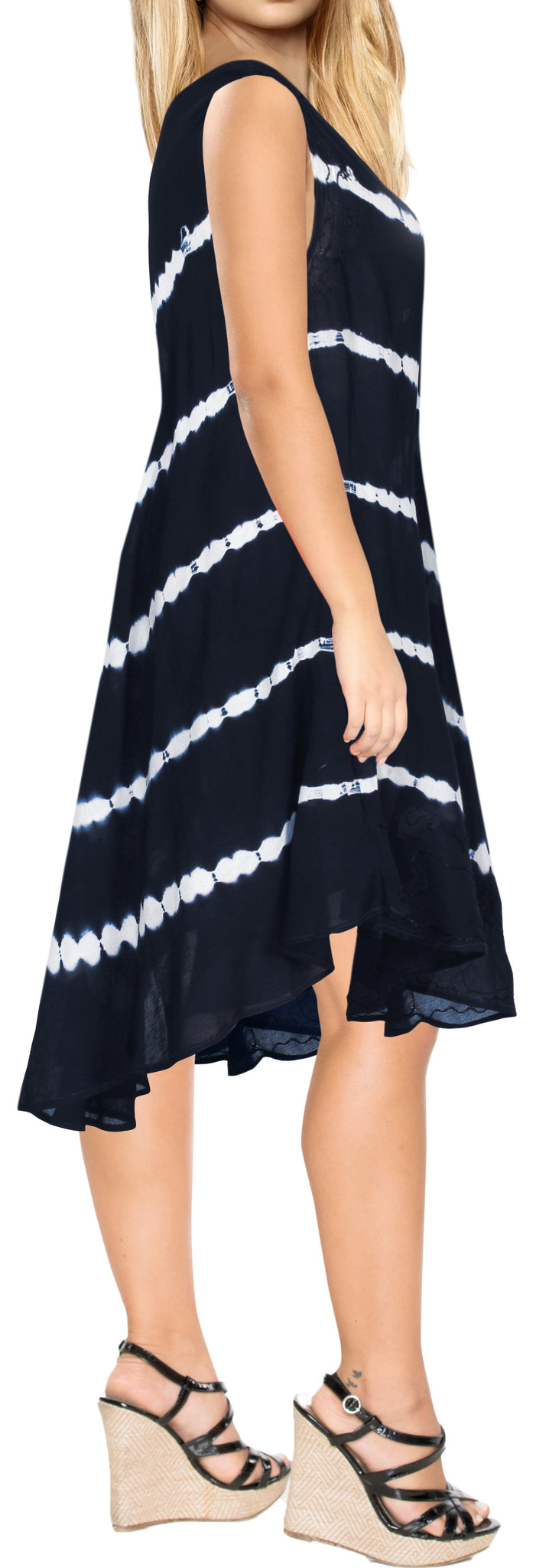 LA LEELA Women's Beach Dress Swing Sundress Beachwear US 14-20W Navy Blue_Q416