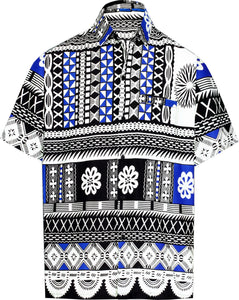 LA LEELA Shirt Casual Button Down Short Sleeve Beach Shirt Men Aloha Pocket Blue_AA169