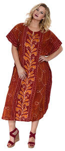 LA LEELA Cotton Batik Printed Women's Kaftan Kimono Summer Beachwear Cover up Dress OSFM 14-18W [L- 2X] Pumpkin Orange_R736