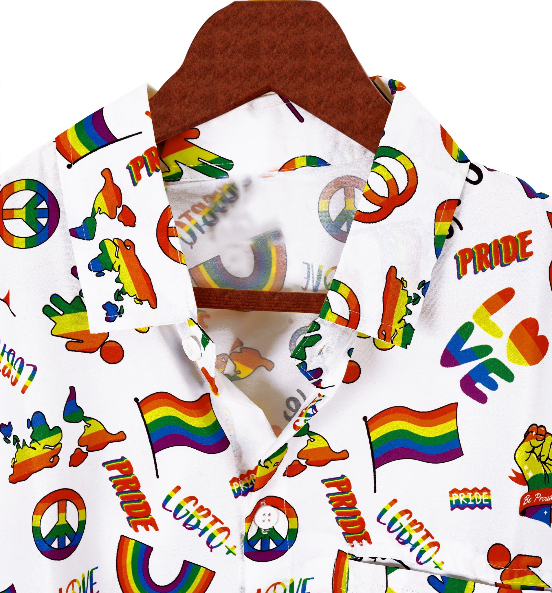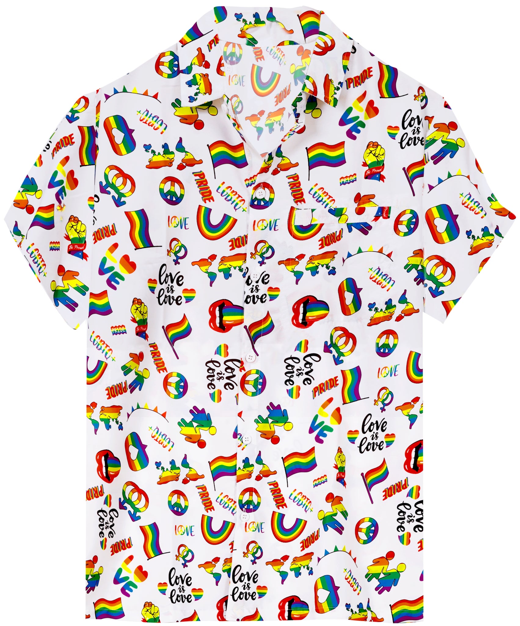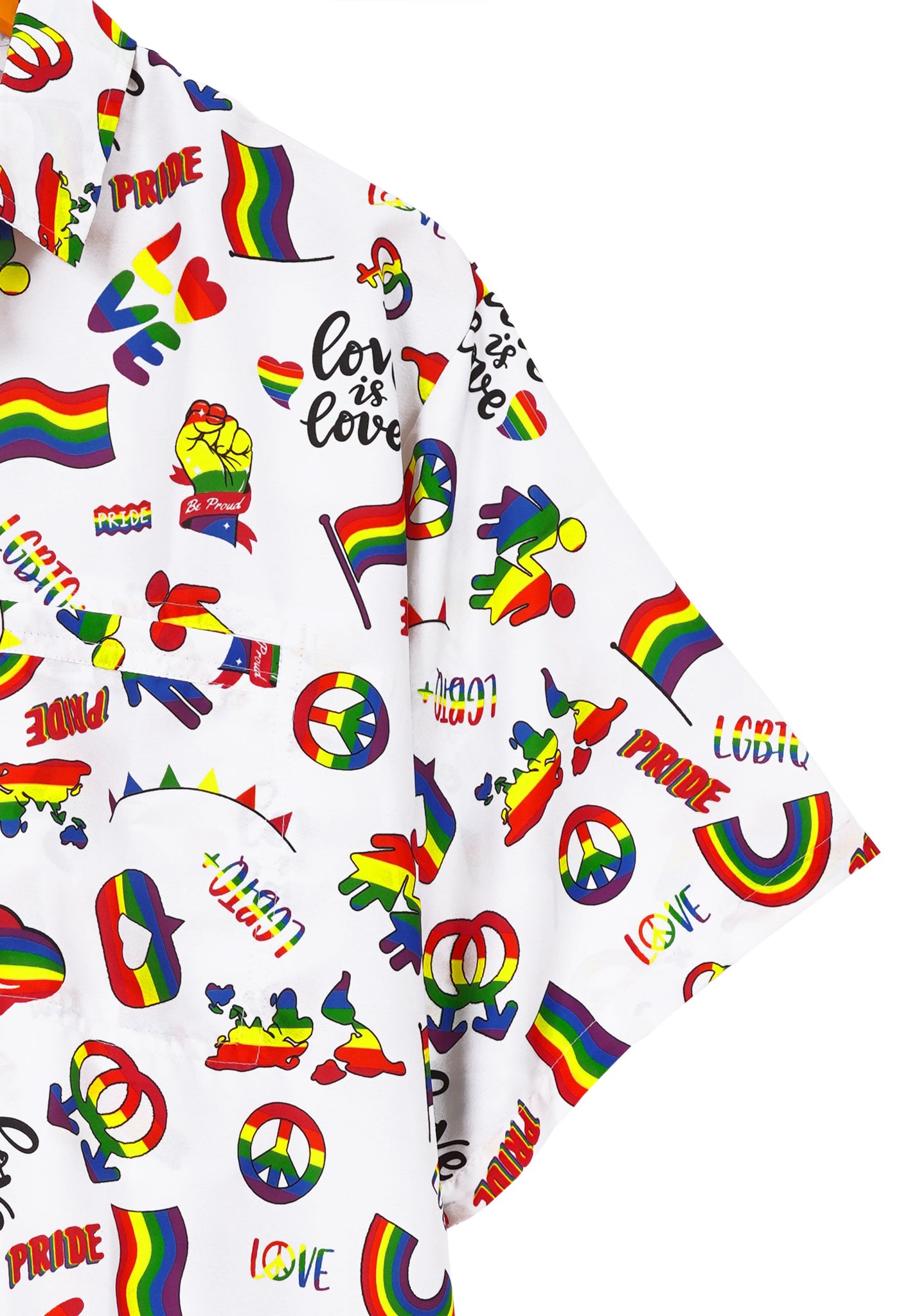 LA LEELA Men's Hawaiian Shirt LGBT White,Pride P00148
