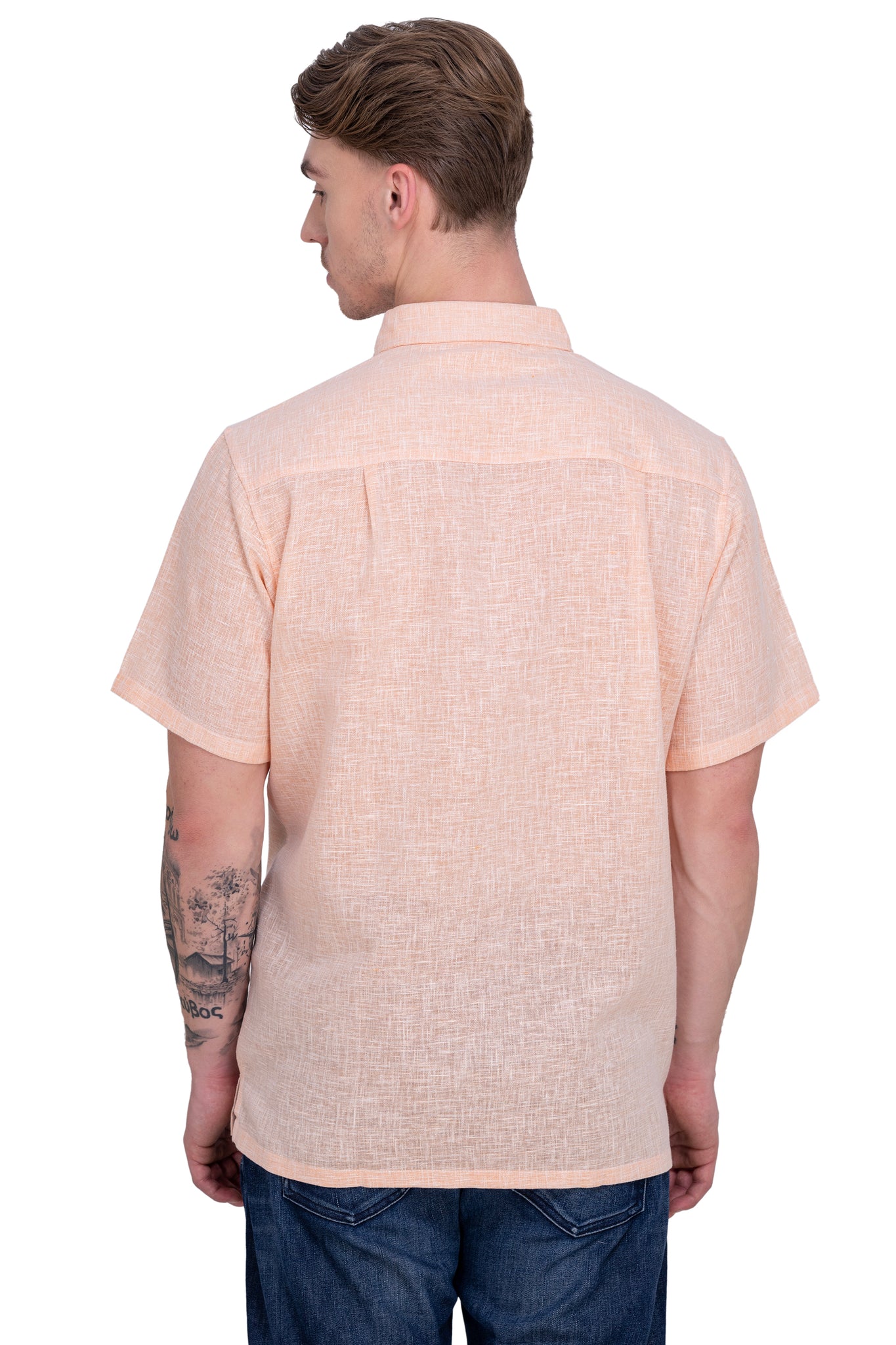 HAPPY BAY Mens Hawaiian Shirts Peach Collard P07754