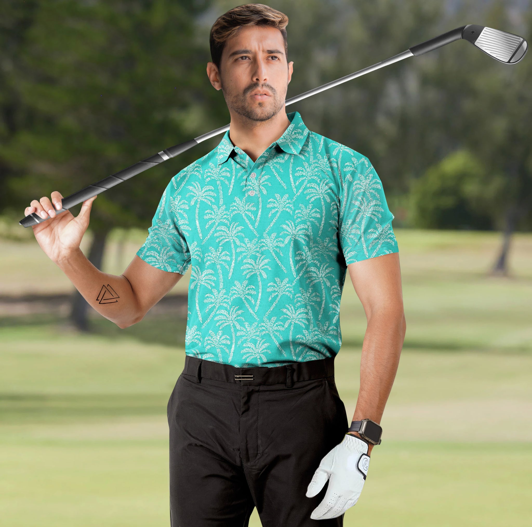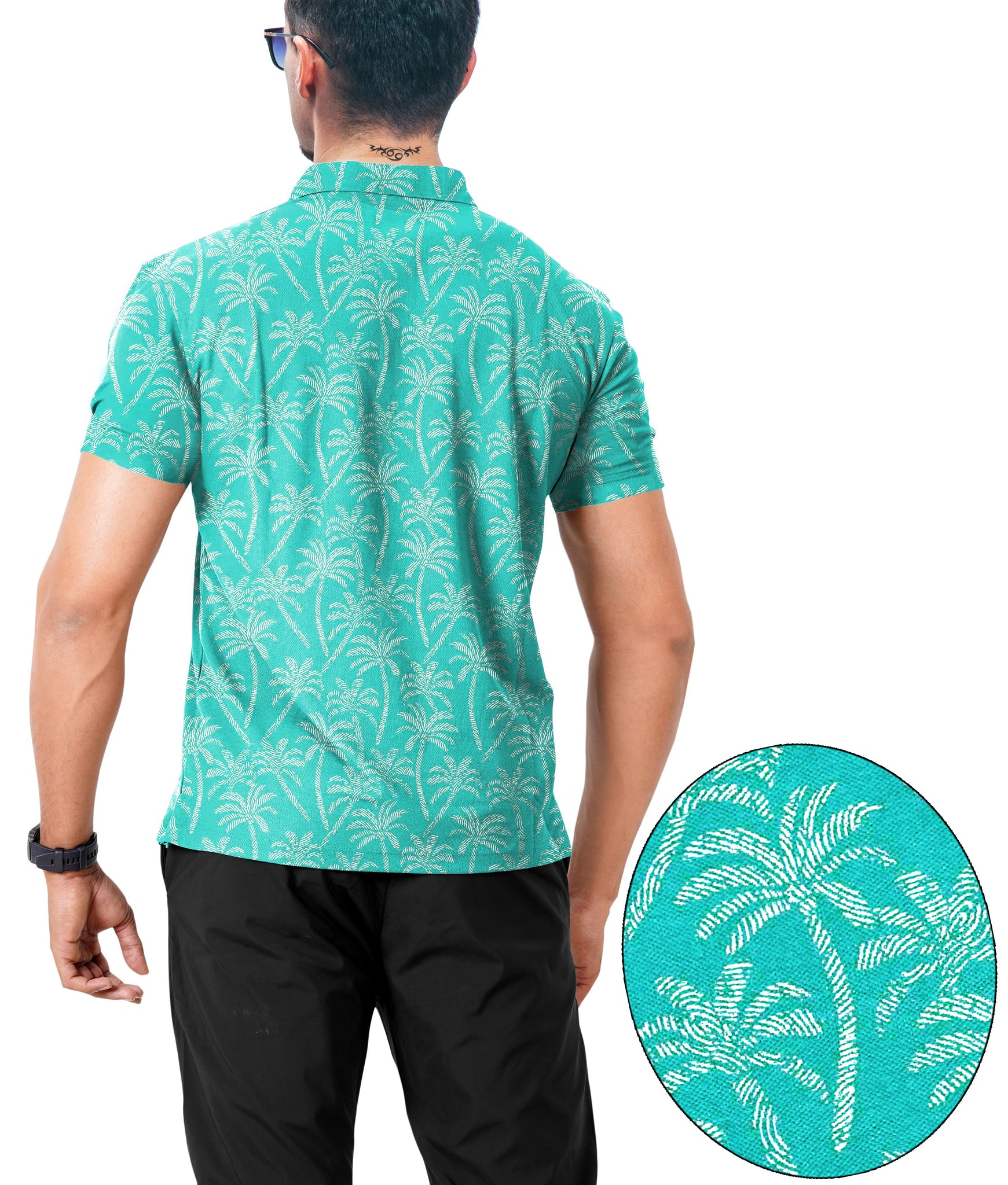 Step into the world of sophistication and comfort with our Men's Polo Tee Shirt featuring an exquisite design of allover Palm Tree against a regal Teal Blue backdrop. Crafted with precision and style in mind, this polo shirt is the epitome of modern fashion and versatility.